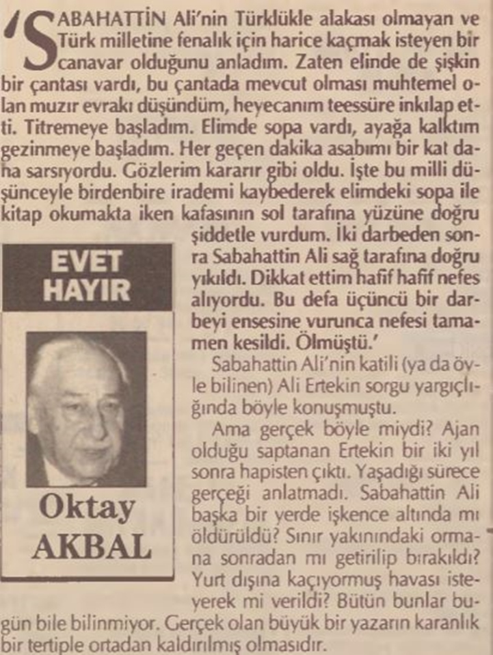 Öldürüldüğünü okuyunca çok üzüldüm ve bizleri hepimizi kendimi kınadım. Onu öldürenlerin arkasındaki zihniyet günümüzde de var olmakta olup bir avuç insanın başkalarına, temel hak ve özgürlüklere hükmetme, eleştiriye tahammül edememe , Atatürk’e ve Türk’lüğe ihanet etme, kardeşi kardeşe kırma arzusudur. Değerini yaşarken bilemediklerimizden biri. Usta yazarımız Ruh’unuz şad olsun.