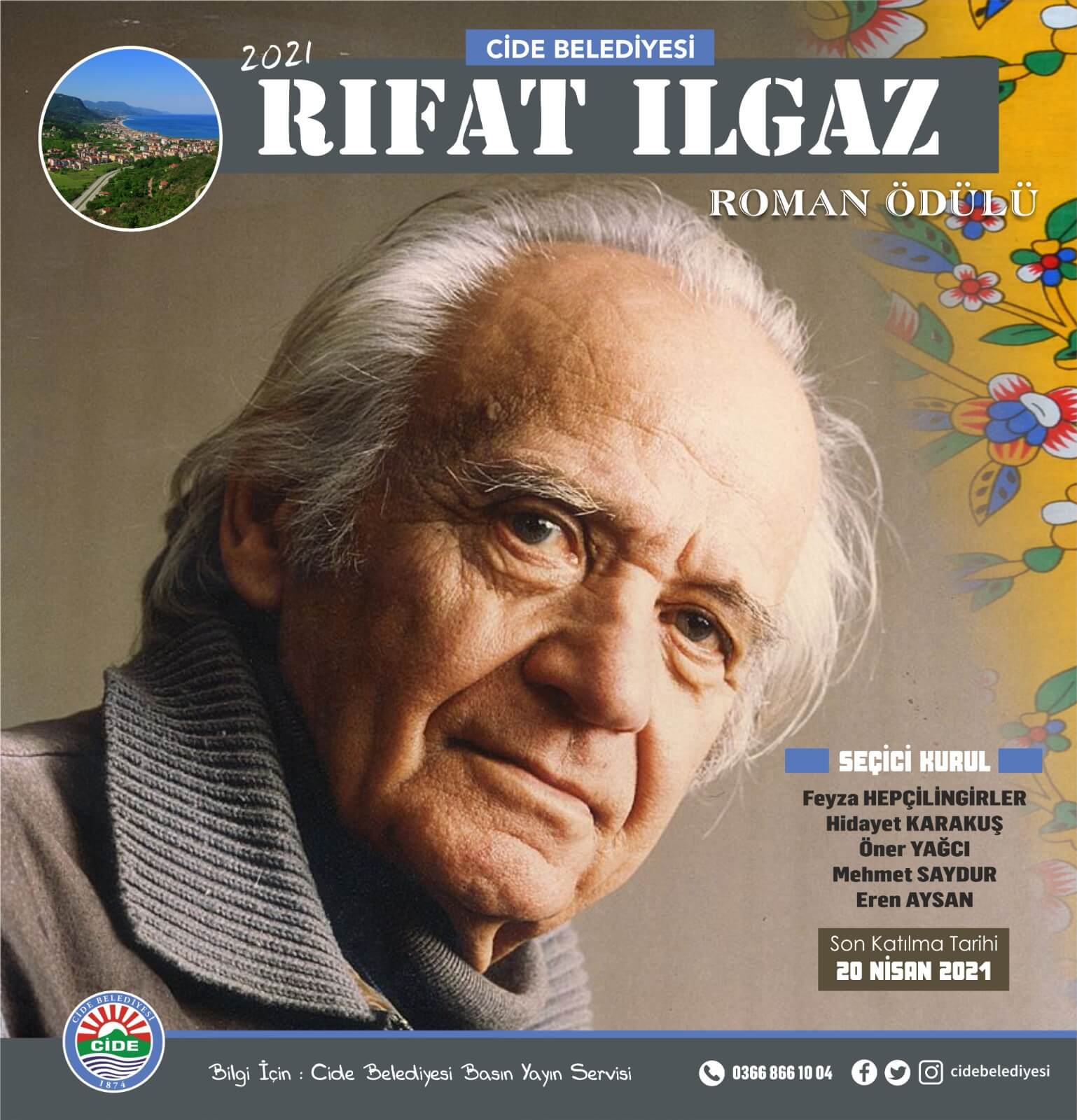 “2021 Rıfat Ilgaz Roman Ödülü Yarışması”nın ödül seçici kurulu; Feyza Hepçilingirler, Hidayet Karakuş, Öner Yağcı, Mehmet Saydur ve Eren Aysan’dan oluşmaktadır. Birincilik ödülü Beşbin TL (5.000) olarak belirlenen yarışmaya başvurular, “Cide Belediyesi Kültür ve Sosyal İşler Müdürlüğü Rıfat Ilgaz Ödülü, Cide/Kastamonu” adresine yapılacaktır.