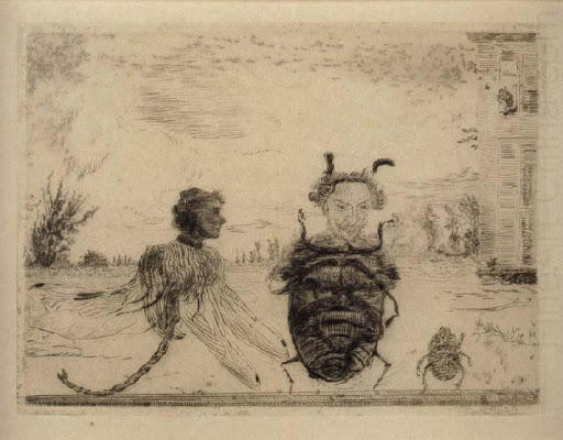 Çizimlerinde maskelerin yanında böcekler de cirit attı. Böceğe dönüşmüş insanlar, sevdiği eskiz konularındandı. Bu çizimlerde de kendi yüzünü kullandı. Bir yanıyla Kafka’nın böceğini, o yazmadan önce çizdi – gerçeküstücüler kadar modern edebi imgelerin de habercisiydi.