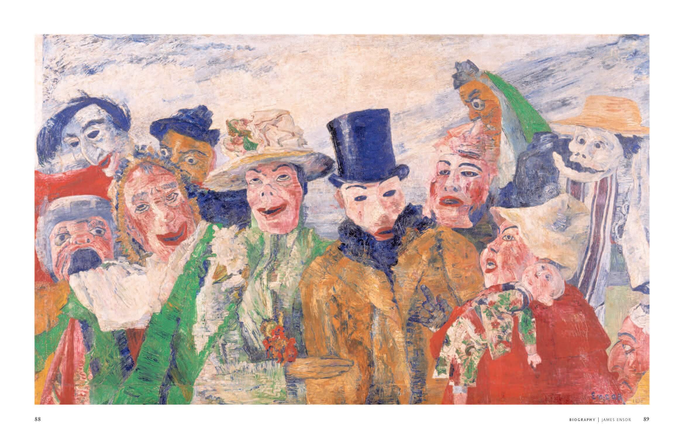 Babasının hediyelik eşya dükkânında büyümesi nedeniyle, tablolarındaki maskeler için çocukluk etkisi yorumları yapılır – bir yanıyla elbette doğru. Beri yandan Oostende de Ensor üzerinde etkilidir. Küçük bir balıkçı kasabasından Ensor’un büyümesine koşut büyümeyle tatil sayfiyesine dönen Oostende, estetik gelişimine de yansıdı. Kasabanın mütevazı maskeli karnavallarının turistik gösteriye dönüşmesi, Ensor’da yabancılaşma duygusunu pekiştirmiş olsa gerek.