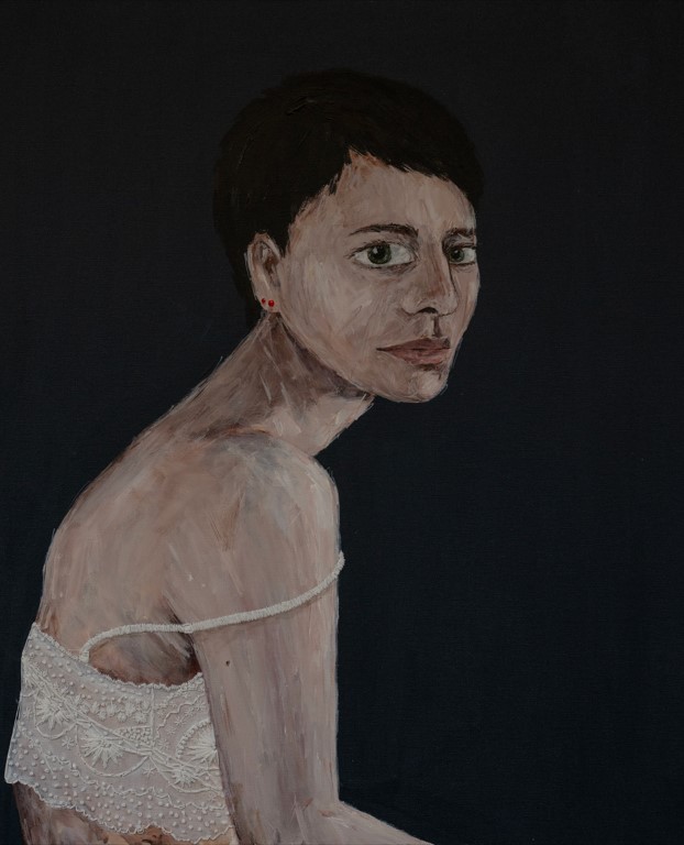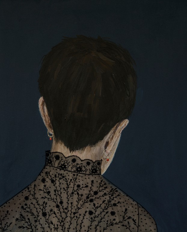 Bu seçkide yer alan portre eserlerde, duyguyu tesis eden renk tercihi özellikle dikkat çekicidir. Duyusal atmosferi belirleyen neredeyse monokrom renklendirmeye ilave edilen jest ve mimik detayları adeta izleyiciyle resmi birbirine bakar hale getirmektedir. Bakışı yakalayıp kendine bağlayan bu karşılıklılıktan sonra yönetimi ele alan detaylar -ki bunlar tekstil malzemesi olarak tasnif edilebilecek tül, iplik vb. malzemeler eser/ler/ in anlam aralığını belirlemektedir. Kullanım alanına göre karakterize olan beyaz ve siyah tüllerle tamamlanan figüratif çözümlemeler yapıt/lar/ın içeriğini serginin kavramsal çerçevesine başarıyla bağlamaktadır. Zira tül, sadece siyah ve beyaz olmaklığıyla hem yaşamı hem ölümü ya da saf olanla olmayanı aynı anda işaret edebilen simgesel bir alt metne sahiptir. Bu iki uçlu simgesel yelpaze içinde salınan tül, Deniz Karakurt Şekerci eserlerinde beyaz ya da siyah olmanın ötesinde tuhaf bir hüznün taşıyıcısına dönüşür. Zira tül, hem kapatan hem gösteren olma özelliğiyle cinselliği işaret etmeye yatkınlığıyla veya gelinliğe dönüşebilmesiyle ilgili değildir burada. Burada malzeme sırtı dönük, boynu eğik bir jestin taşımakta olduğu kederin altını çizmekle meşguldür. Fular, gecelik, iç çamaşır, duvak ya da gelinlik olarak görünür kıldığı şey, obje olarak kadın değil, politik olarak kadın değil, insan olarak -özellikle ülkemizde- kadın olmanın hüznüdür.