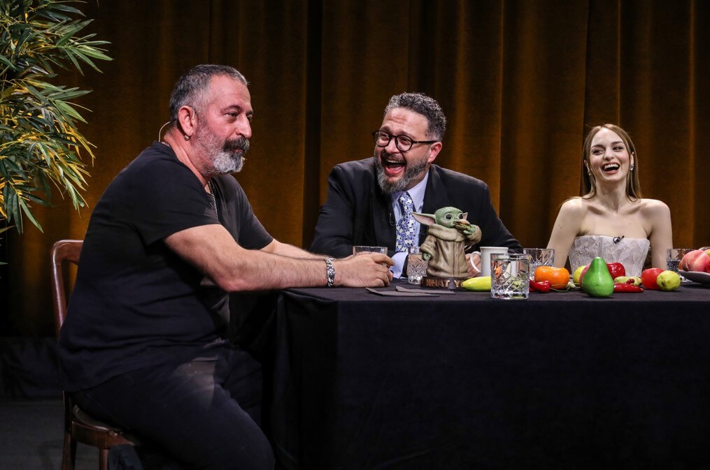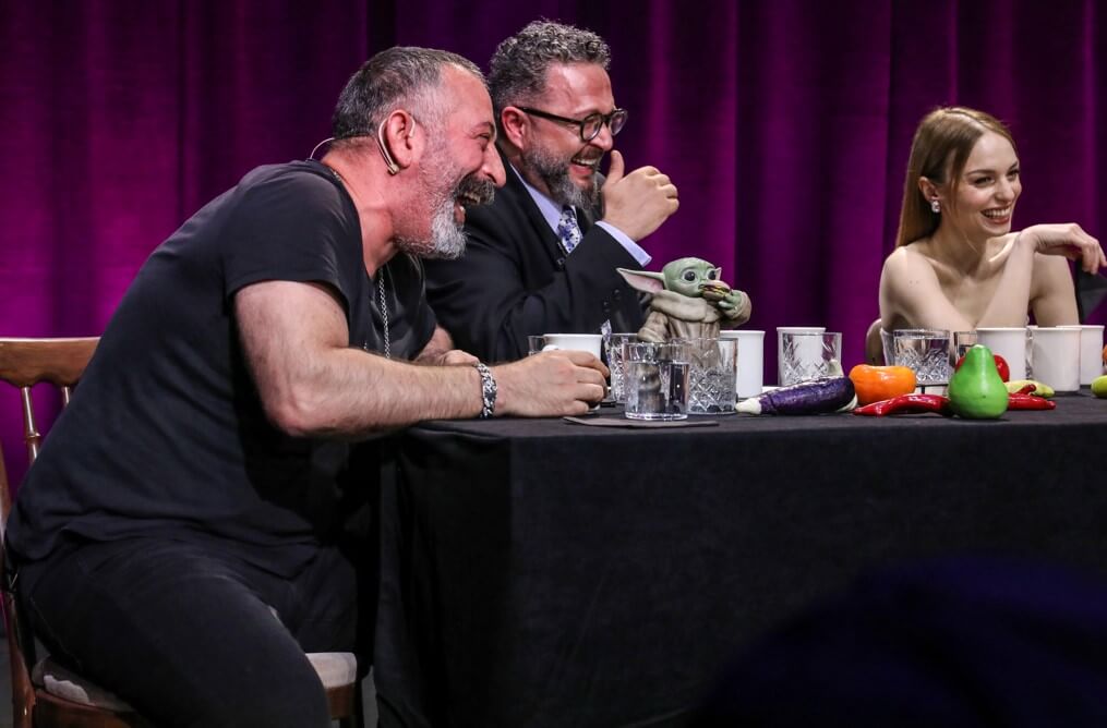 Müzikten, stand-up’a, mizahtan güncel konulara her alana dokunan ve her anı eğlence dolu dakikalara sahne olan Zorlu PSM’nin sevilen programı “İbrahim Selim ile Bu Gece”nin yeni bölümünde Netflix’te gösterime giren Erşan Kuneri dizisi oyuncuları; Cem Yılmaz, Uraz Kaygılaroğlu, Nilperi Şahinkaya, Zafer Algöz, Çağlar Çorumlu, Bülent Şakrak olurken Ezgi Mola ve Merve Dizdar da programa görüntülü bağlandı. Erşan Kuneri dizisi oyuncuları için özel olarak hazırlanan şahane bir masa etrafında İbrahim Selim ile birlikte oturan Cem Yılmaz, Uraz Kaygılaroğlu, Nilperi Şahinkaya, Zafer Algöz, Çağlar Çorumlu ve Bülent Şakrak, sıra dışı sorulara verdikleri birbirinden eğlenceli yanıtların yanı sıra yepyeni projeleri Erşan Kuneri’ye dair her şeyi tüm samimiyetleriyle “İbrahim Selim ile Bu Gece” programında anlattılar.