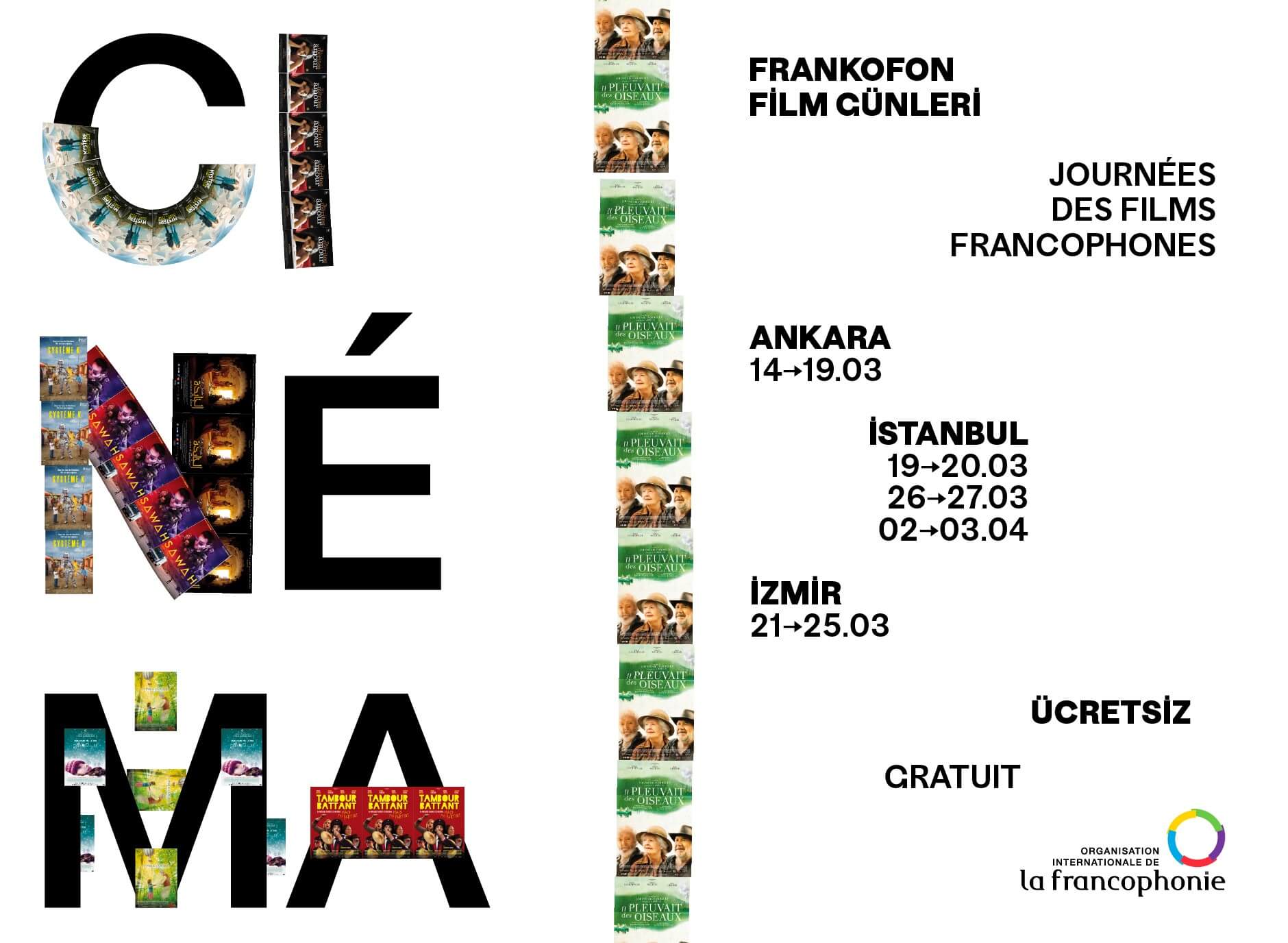 Institut français Türkiye, Frankofoni baharı vesilesiyle ve İsviçre, Kanada, Belçika Başkonsoloslukları ile Lüksemburg, Fas, Avusturya ve Tunus Büyükelçilikleri ortaklığında Mart ayı boyunca Frankofon Film Günleri düzenliyor.