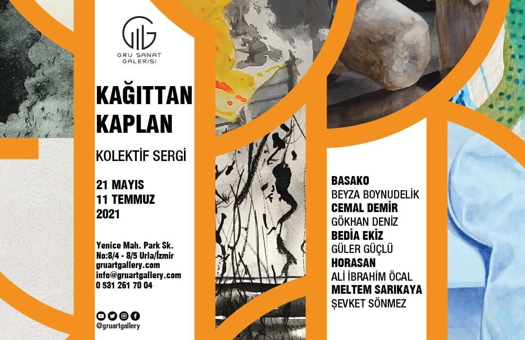 Gru Sanat Galerisi, on çağdaş sanatçının kağıt üzerine gerçekleştirdikleri çalışmaları bir araya getiren Kağıttan Kaplan isimli kolektif sergiyi 21 Mayıs – 11 Temmuz 2021 tarihleri arasında Urla’daki mekanında izleyiciyle buluşturuyor. Sanatçı Cemal Demir’in seçkisini gerçekleştirdiği ve ismini verdiği sergi; Basako, Beyza Boynudelik, Gökhan Deniz, Bedia Ekiz, Güler Güçlü, Horasan, Ali İbrahim Öcal, Meltem Sarıkaya ve Şevket Sönmez’in kağıt üzerine gerçekleştirdiği çalışmaları izleyiciye sunuyor.