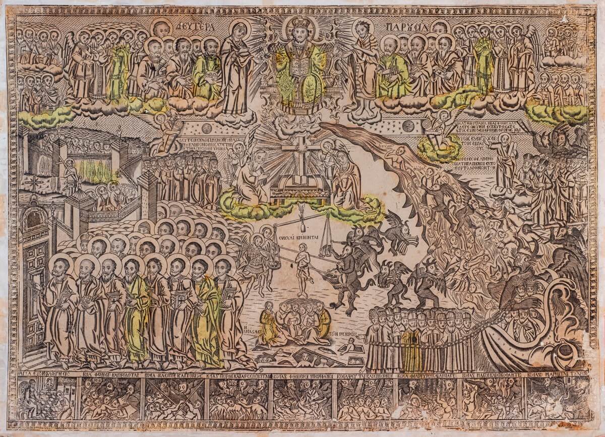 Anadolu Ağırlık ve Ölçüleri Koleksiyonu’ndan iki eser, Ağırlık ve Ölçü Sanatı sergisi kapsamında ilk kez ziyaretçilerle buluşuyor. Bu eserlerden ilki, 19. yüzyıla tarihlenen, İkinci Geliş ve Son Yargı Sahnelerini Tasvir Eden Kağıt İkona. İkonanın merkezinde yer alan adalet terazisi, ölülerin yaşarken sergiledikleri eylemlere göre yargılanacakları inancına atıfta bulunuyor. Son Yargı kompozisyonlarında denge terazisinin odağa alınması, adil ve doğru tartmanın Tanrı’nın bir emri olduğunu hatırlatıyor. Bizans imparatoru figürünün merkezde yer aldığı dünyevi mahkeme, semavi mahkemenin bir yansıması olarak görülüyor.