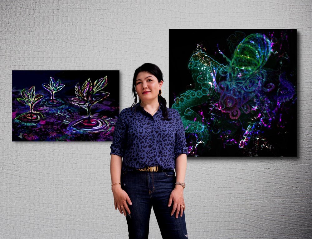 Amerika’nın köklü okullarından Yale Üniversitesi’nden yüksek lisansı olan melez sanatçı Melek Anqi, pandemiyle beraber Türkiye’ye yerleşmişti. Sergide yer alacak “Glow-in-the-Dark” serisi, sanatçının 7 yaşında ailesiyle Türkiye’den Tayvan’a yerleşmesini ve oraya alışma sürecini gerçeküstü bir dille işliyor. Sanatçı onu çok etkileyen bu çocukluk deneyimini, gecenin karanlığında ışıltılı bir ormanda çıkılan büyülü bir gezintiyi resmederek aktarıyor. Büyük ışıltılı ağaçların, parıldayan çiçeklerin ve karanlık sulardan yükselen tuhaf yaratıkların olduğu bir dünyada geziniyormuş gibi hissettiren seriden seçili eserler, MAJİ Art Gallery’deki sergide görülebilecek.
